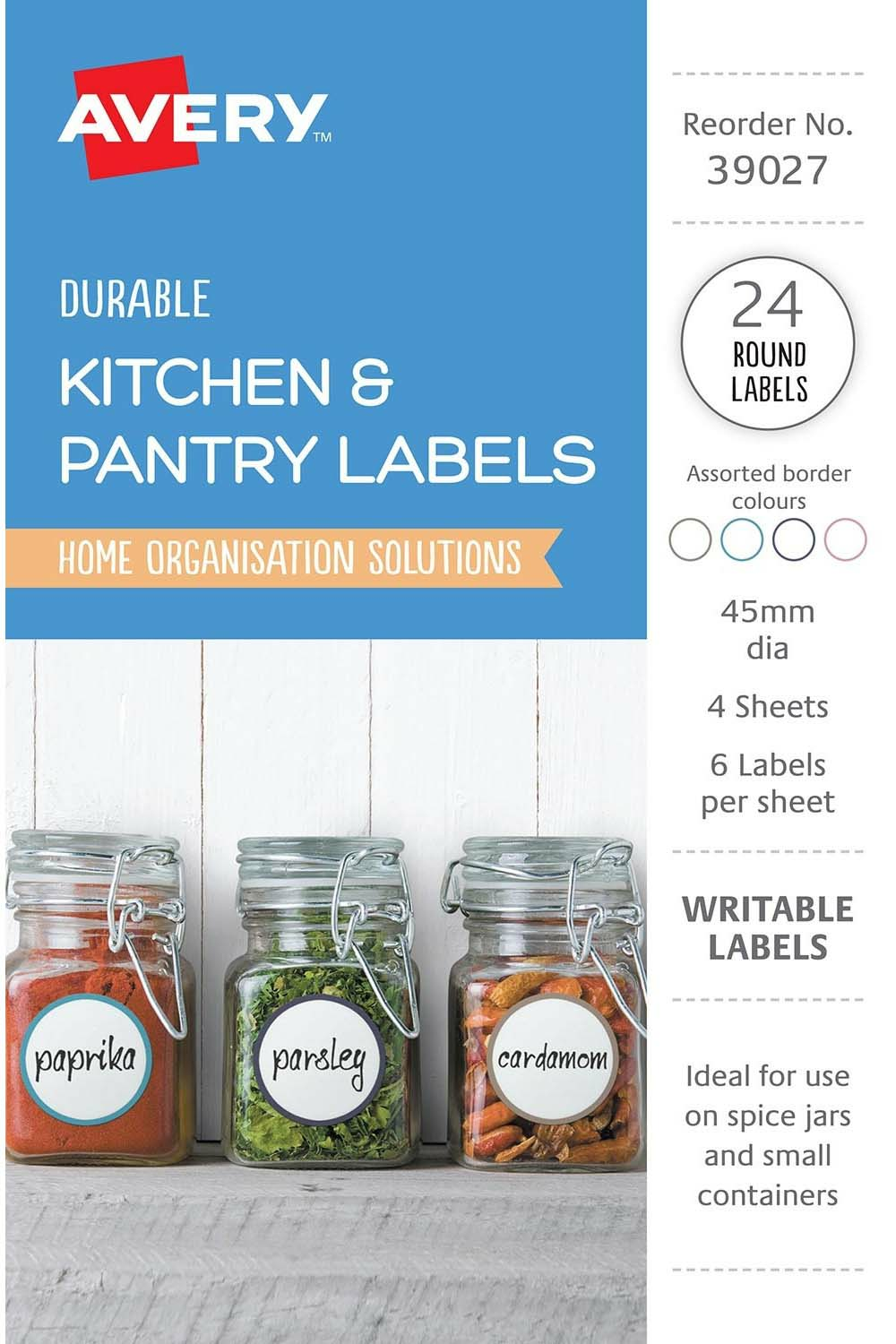 Avery Kitchen Pantry Labels Round 45mm Assorted Colours Pack Of 24 Whitcoulls